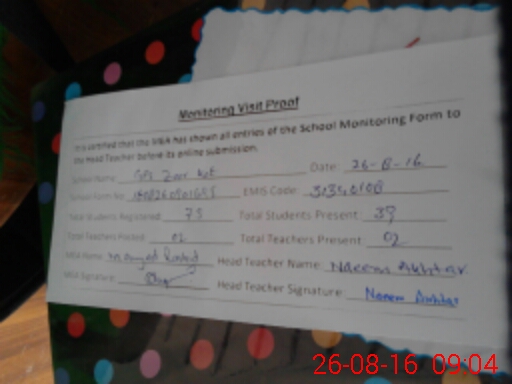 | EMIS Code: 31340108 | Name of School: GPS ZOOR KOT | |||