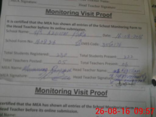 | EMIS Code: 31150176 | Name of School: GPS AZEEM PURA | |||