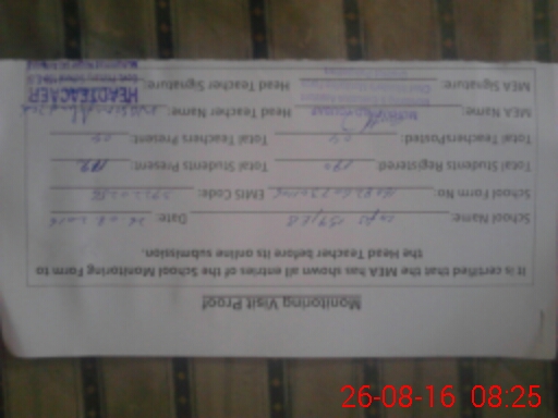| Attendance Register | Head Teacher | MEA with School | Visit Proof |