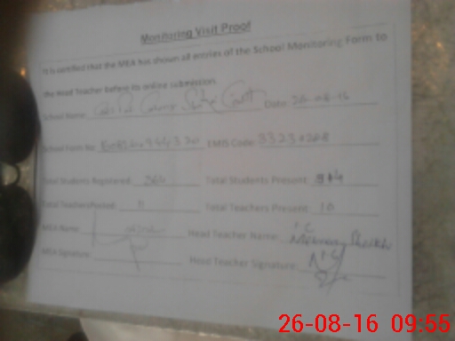 | Attendance Register | Head Teacher | MEA with School | Visit Proof |