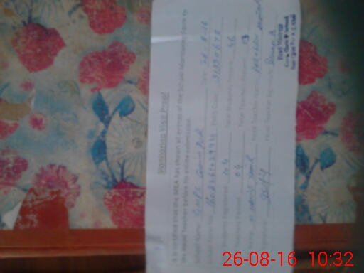 | Monitoring Date: 26-08-2016 | Start Time: 26-08-2016 10:10 AM | End Time: 26-08-2016 10:34 AM | Name of MEA: Mu**** Ha**** Ta**** | |