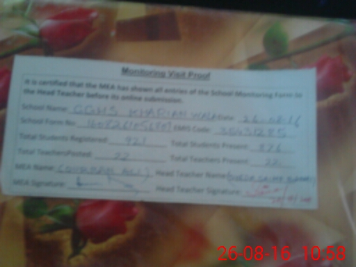 | EMIS Code: 35431285 | Name of School: GGHS KHARIAN WALA | |||