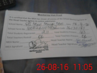 | Attendance Register | Head Teacher | MEA with School | Visit Proof |