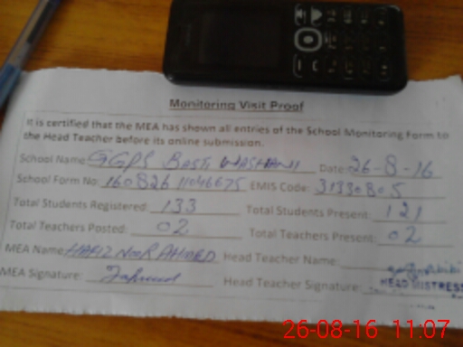 | EMIS Code: 31330805 | Name of School: GGPS BASTI WASHANI | |||