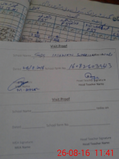 | Attendance Register | Head Teacher | MEA with School | Visit Proof |