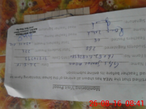 | Certified that this School was Inspected by the Undersigned MEA/DMO Today and the Information Stated Above is as Per Record. | |||||