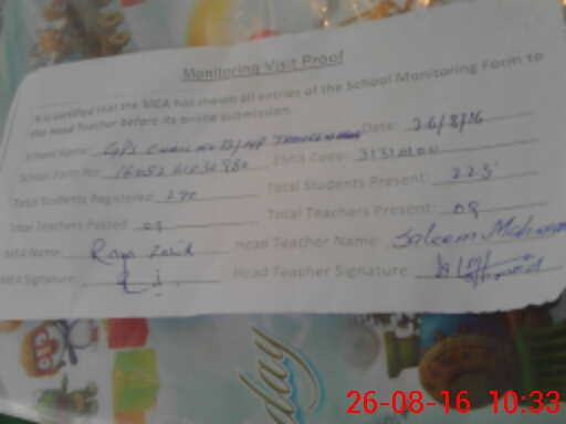 | Certified that this School was Inspected by the Undersigned MEA/DMO Today and the Information Stated Above is as Per Record. | |||||