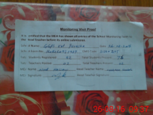 | Certified that this School was Inspected by the Undersigned MEA/DMO Today and the Information Stated Above is as Per Record. | |||||