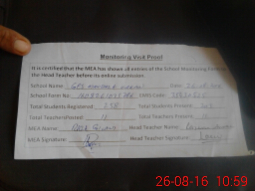 | Attendance Register | Head Teacher | MEA with School | Visit Proof |