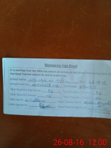 | EMIS Code: 31310317 | Name of School: GPS CHAK NO. 100/1-L | |||