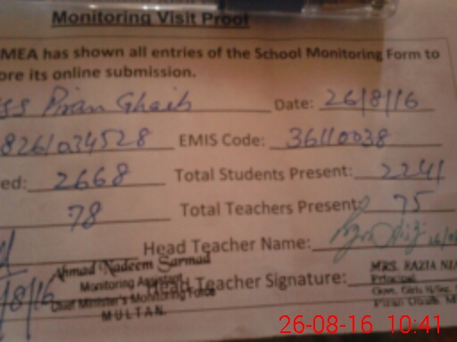 | EMIS Code: 36110038 | Name of School: GGHSS PIRAN GHAIB MULTAN | |||