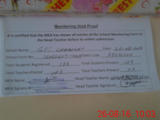 | EMIS Code: 39210226 | Name of School: GPS CHANWAT | |||