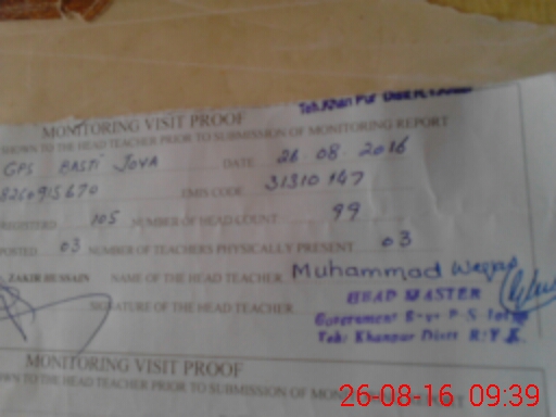 | Name: Mu**** As**** Designation: (School Headmaster's/Headmistress's) PST Phone/Cell Number: 03**** |