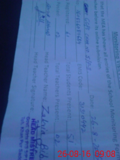 | Name: Zi**** Bi**** Designation: (School Headmaster's/Headmistress's) P S T Phone/Cell Number: 03**** |
