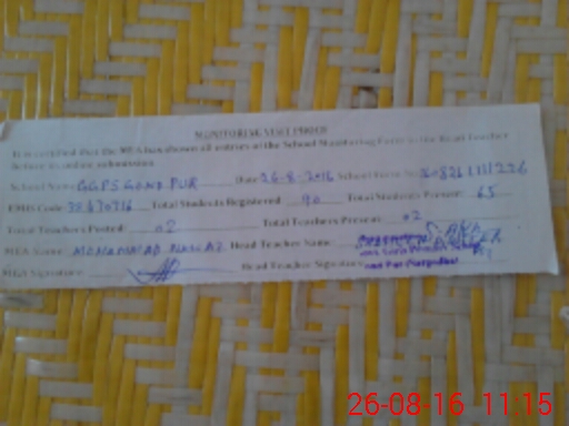 | Attendance Register | Head Teacher | MEA with School | Visit Proof |