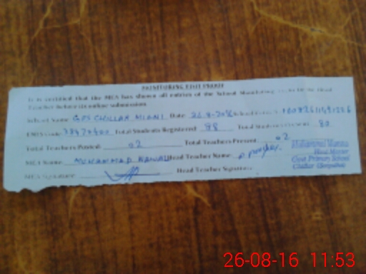 | Name: MU**** MA**** Designation: (School Headmaster's/Headmistress's) PTC/JV Phone/Cell Number: 03**** |