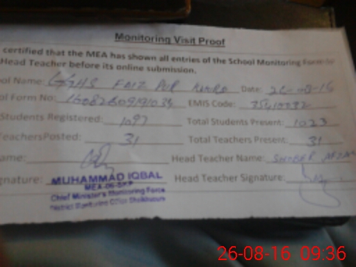 | Certified that this School was Inspected by the Undersigned MEA/DMO Today and the Information Stated Above is as Per Record. | |||||