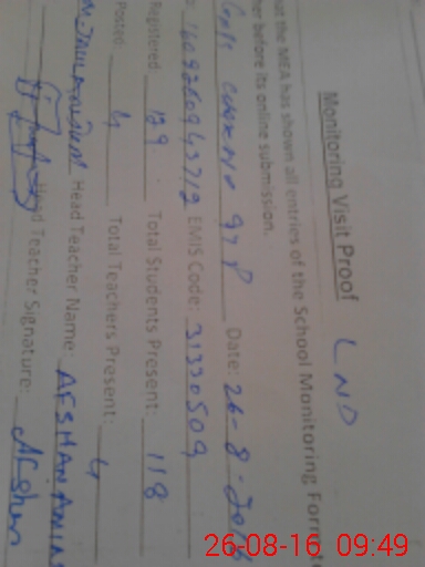 | Certified that this School was Inspected by the Undersigned MEA/DMO Today and the Information Stated Above is as Per Record. | |||||