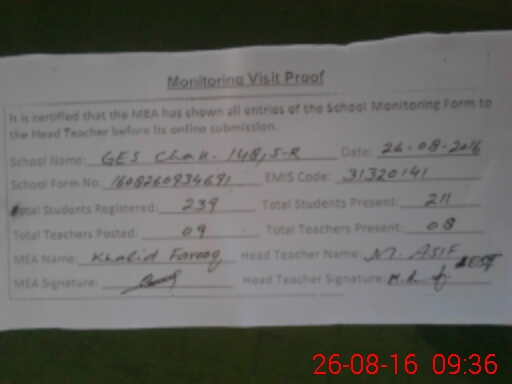| EMIS Code: 31320141 | Name of School: GHS CHAK 148/A | |||