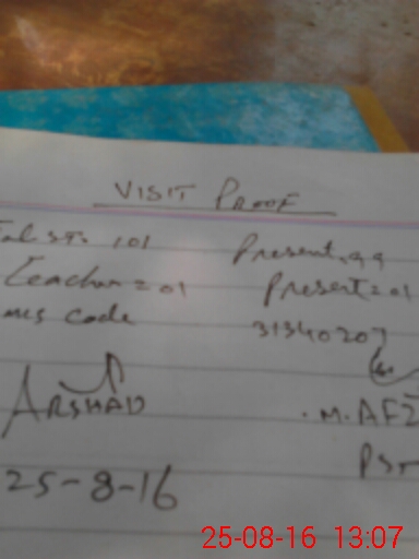 | Attendance Register | Head Teacher | MEA with School | Visit Proof |
