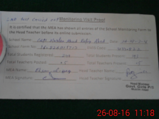 | Certified that this School was Inspected by the Undersigned MEA/DMO Today and the Information Stated Above is as Per Record. | |||||
