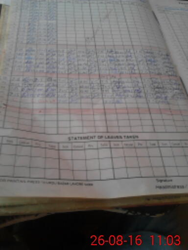 | CNIC | Full Name | Designation | R/C | Absence During Last Calender Month |