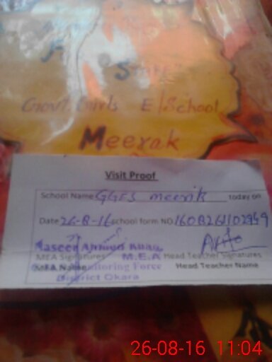 | Attendance Register | Head Teacher | MEA with School | Visit Proof |