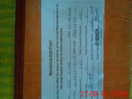 | Attendance Register | Head Teacher | MEA with School | Visit Proof |