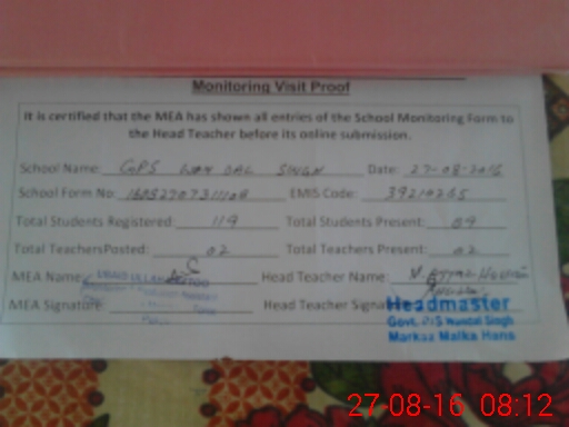 | Certified that this School was Inspected by the Undersigned MEA/DMO Today and the Information Stated Above is as Per Record. | |||||