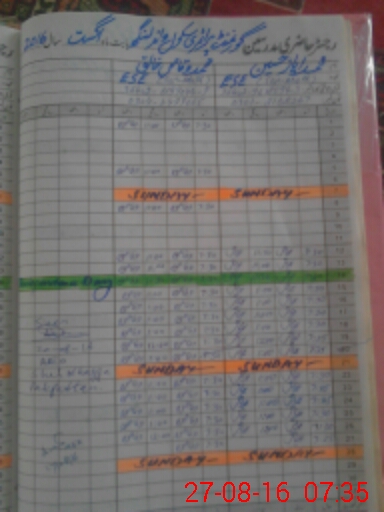 | Monitoring Date: 27-08-2016 | Start Time: 27-08-2016 07:31 AM | End Time: 27-08-2016 08:13 AM | Name of MEA: Mu**** Ub**** Ul**** | |