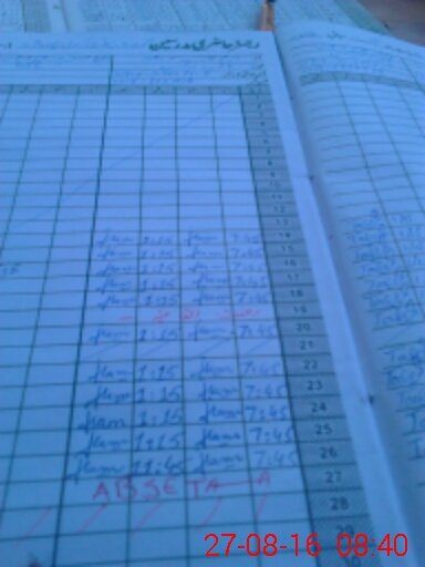 | CNIC | Full Name | Designation | R/C | Absence During Last Calender Month |