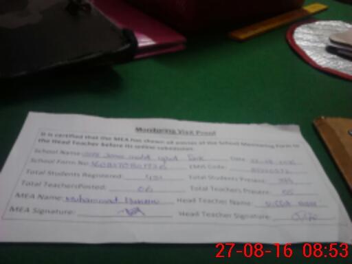 | Certified that this School was Inspected by the Undersigned MEA/DMO Today and the Information Stated Above is as Per Record. | |||||