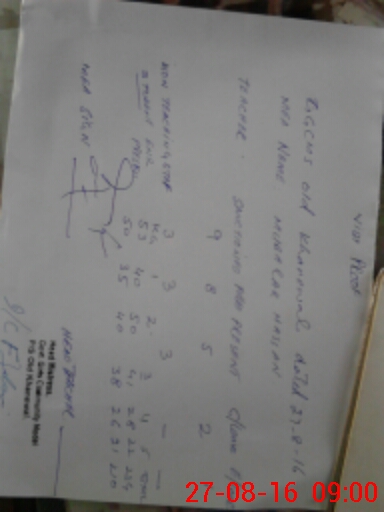 | Monitoring Date: 27-08-2016 | Start Time: 27-08-2016 08:26 AM | End Time: 27-08-2016 09:01 AM | Name of MEA: Z-**** Ha**** | |