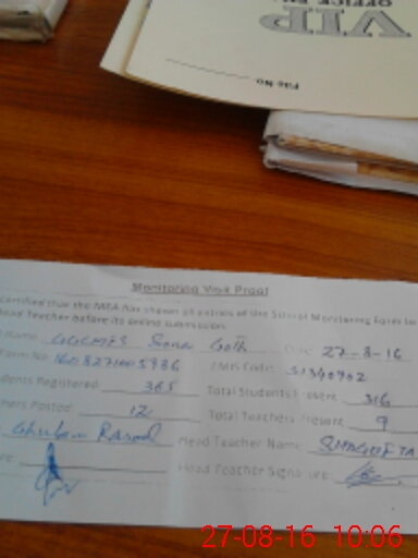 | Attendance Register | Head Teacher | MEA with School | Visit Proof |