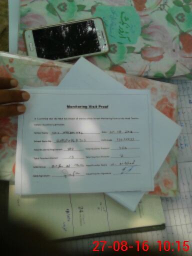 | Monitoring Date: 27-08-2016 | Start Time: 27-08-2016 08:49 AM | End Time: 27-08-2016 10:16 AM | Name of MEA: J-**** ZA**** AL**** KH**** (R**** 19**** | |