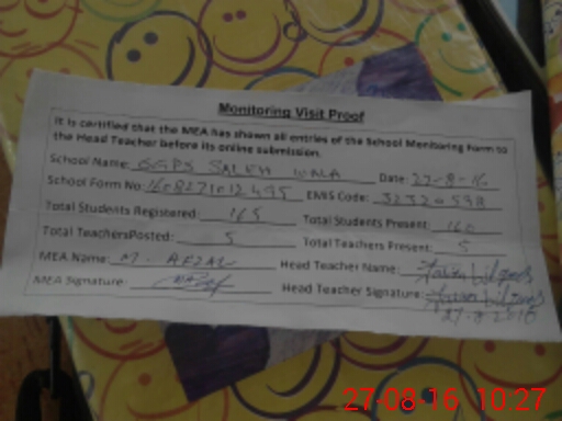 | EMIS Code: 32320598 | Name of School: GGPS SALEH WALA | |||