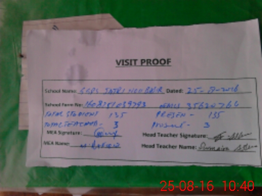 | Attendance Register | Head Teacher | MEA with School | Visit Proof |
