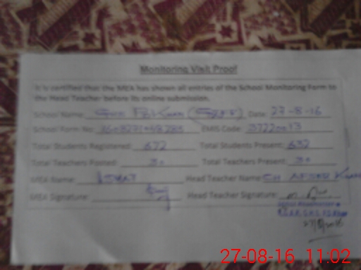 | Certified that this School was Inspected by the Undersigned MEA/DMO Today and the Information Stated Above is as Per Record. | |||||