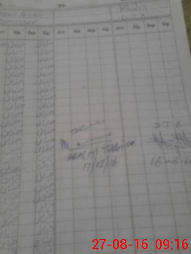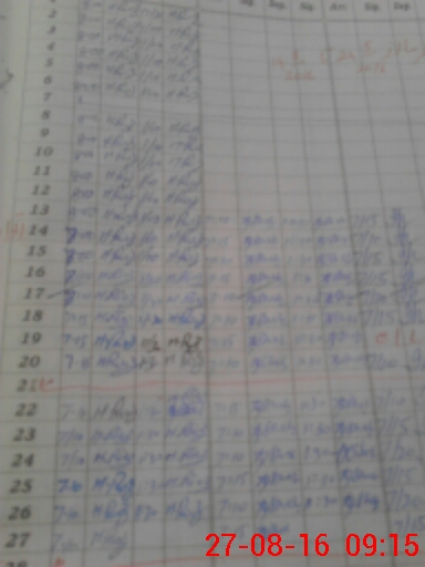 | Monitoring Date: 27-08-2016 | Start Time: 27-08-2016 09:07 AM | End Time: 27-08-2016 09:16 AM | Name of MEA: Mo**** Sa**** (R**** | |