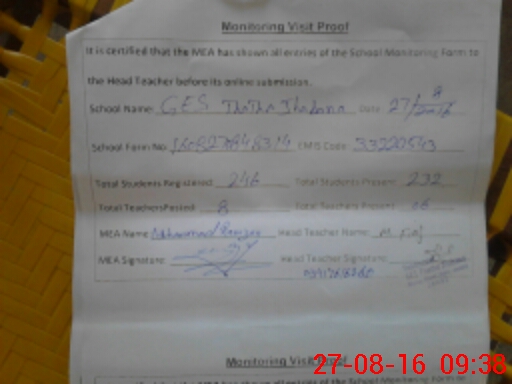| Attendance Register | Head Teacher | MEA with School | Visit Proof |