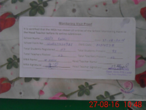| Certified that this School was Inspected by the Undersigned MEA/DMO Today and the Information Stated Above is as Per Record. | |||||
