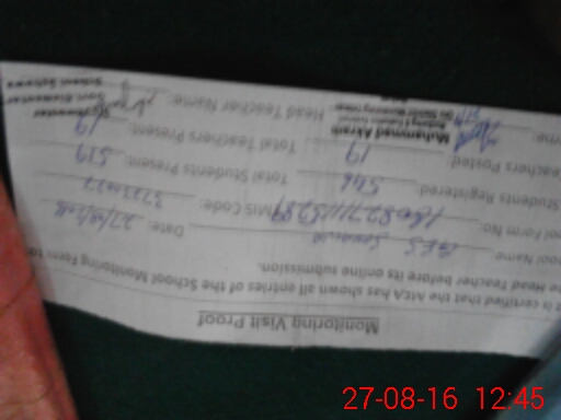| Attendance Register | Head Teacher | MEA with School | Visit Proof |