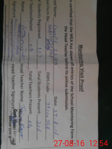 | Certified that this School was Inspected by the Undersigned MEA/DMO Today and the Information Stated Above is as Per Record. | |||||