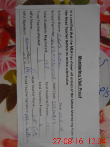 | Certified that this School was Inspected by the Undersigned MEA/DMO Today and the Information Stated Above is as Per Record. | |||||