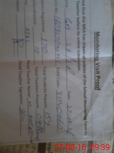 | Attendance Register | Head Teacher | MEA with School | Visit Proof |