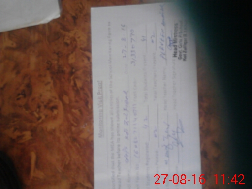 | Monitoring Date: 27-08-2016 | Start Time: 27-08-2016 11:19 AM | End Time: 27-08-2016 11:43 AM | Name of MEA: Mu**** Ha**** Ta**** | |