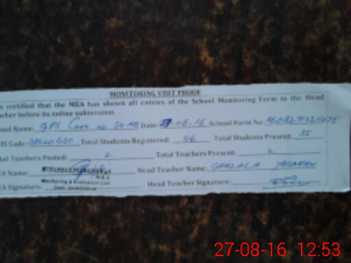 | Attendance Register | Head Teacher | MEA with School | Visit Proof |
