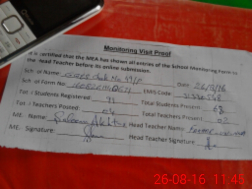 | Attendance Register | Head Teacher | MEA with School | Visit Proof |