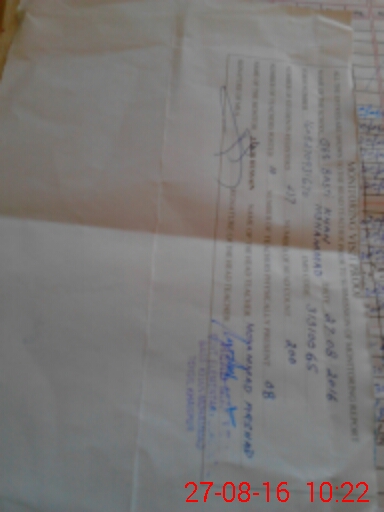 | Monitoring Date: 27-08-2016 | Start Time: 27-08-2016 09:31 AM | End Time: 27-08-2016 10:27 AM | Name of MEA: Za**** Hu**** | |