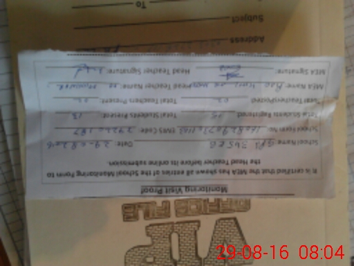 | Attendance Register | Head Teacher | MEA with School | Visit Proof |